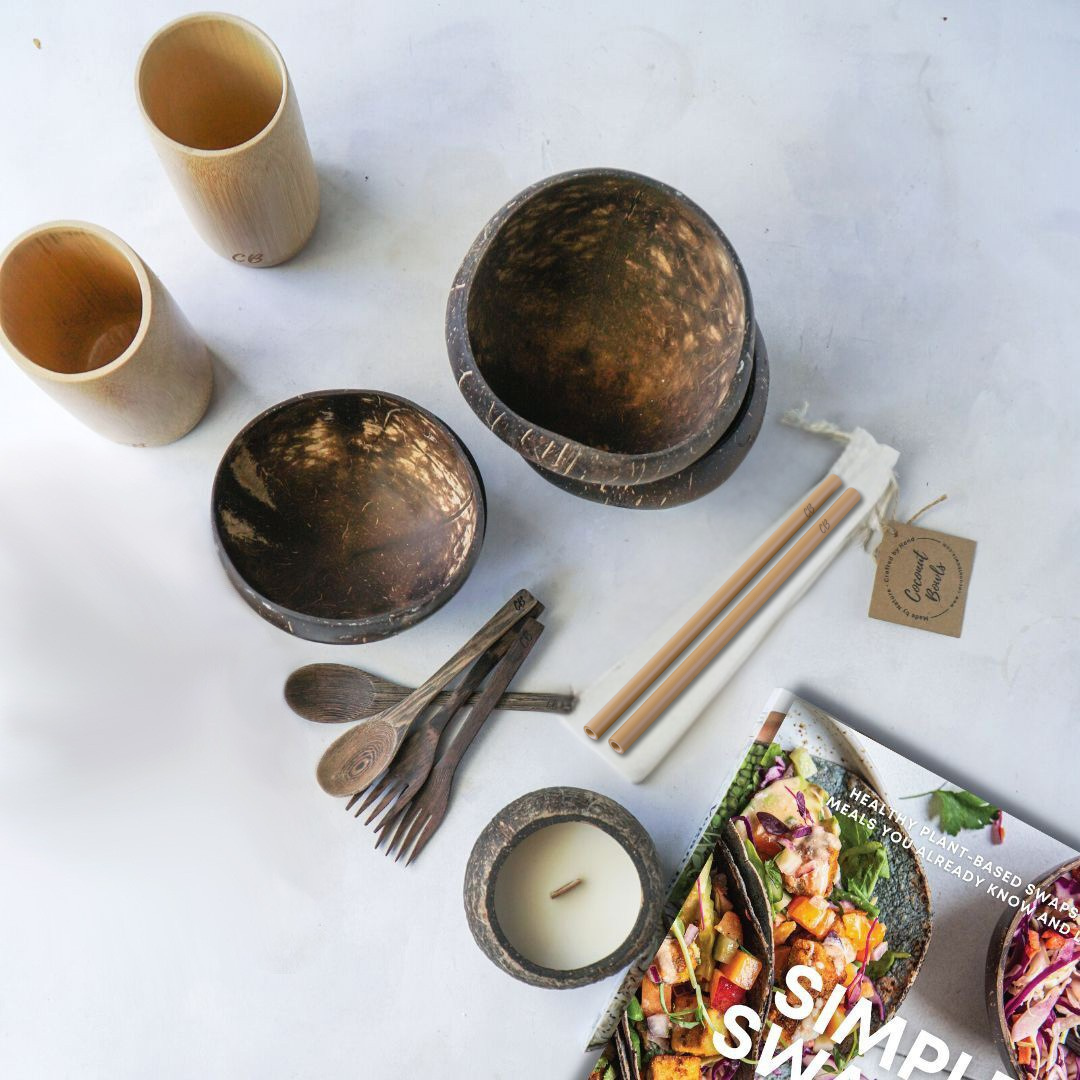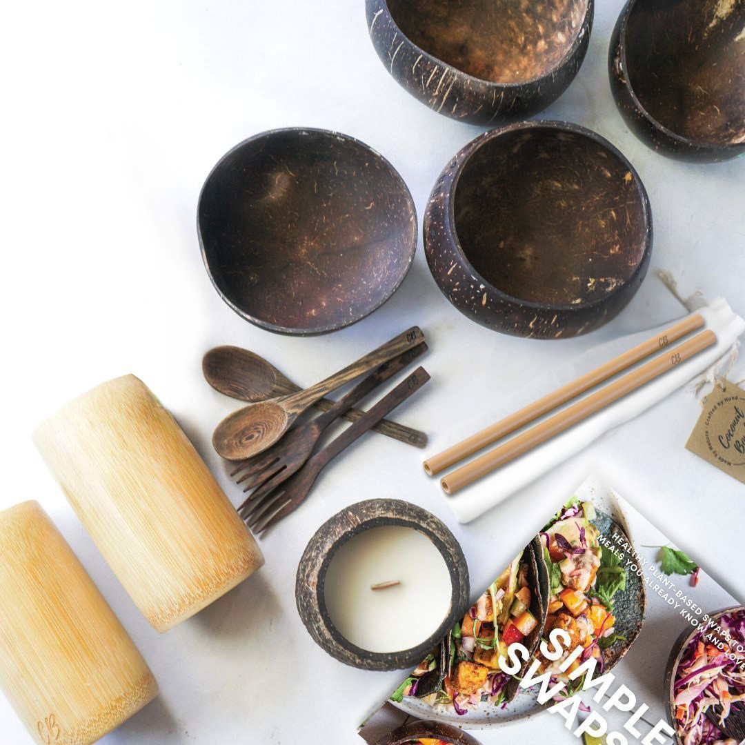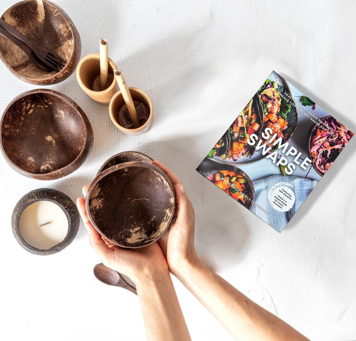 Bonus: we've added a Decorative Coconut Candle (not suitable for burning) and your choice of our Simple Swaps Vegan cookbook (physical copy) or Simple Swaps eBook (digital copy) to make your healthy and sustainable journey even more exciting!